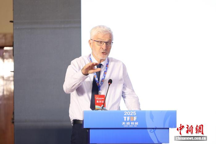图为法国著名生态学家帕特里克·吉拉杜在2025年天府书展上发表演讲。四川教育出版社供图